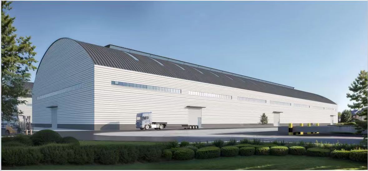 该项目厂房长180m,宽58.5m,檐口高度+15m,屋脊高度+27m,屋脊处通风亭高度+29m,基础采用桩基础,主体结构采用钢桁架结构,围护系统为压型彩钢板屋面+墙面,屋面与墙面在每跨设置采光带。钢结构立柱采用螺旋焊管,山墙主桁架、中部主桁架为倒三角形立体桁架。主桁架间设置次桁架及联系杆,屋脊处设置通风亭桁架。墙面和屋面设置水平支撑及柱间支撑。其中倒三角立体桁架共计21榀,次侧桁架共计124榀,通风亭桁架共计17榀。材料主要选用Q235B及Q355B,钢柱及桁架截面主要采用螺旋钢管、直缝焊管,屋面檩条采用Z型钢。